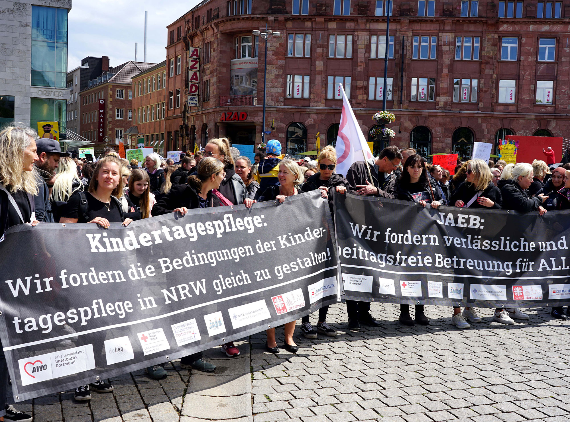 Verlässliche und beitragsfreie Betreuung für alle zählten zu den Forderungen der Demonstration in Dortmund, an der sich mehrere katholische Träger und Einrichtungen beteiligten. Foto: Michael Bodin / Erzbistum Paderborn
