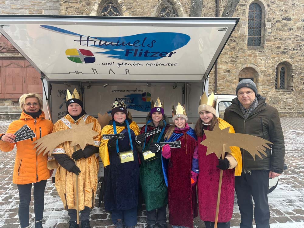 Unterstützt wurden die Sternsinger auch durch den „HimmelsFlitzer“, das Kirchenmobil der Pfarrei. Damit besuchten sie belebte Plätze und schenkten Passanten den beliebten Segensaufkleber für die Haustür. Pfarrer Ludger Keite würdigte das Engagement der jungen Teilnehmerinnen und Teilnehmer: „Durch ihre Teilnahme lernen die Kinder und Jugendlichen nicht nur die Bedeutung von Hilfsbereitschaft und Solidarität, sondern setzen als Segensträger auch ein Zeichen für eine bessere Welt.“